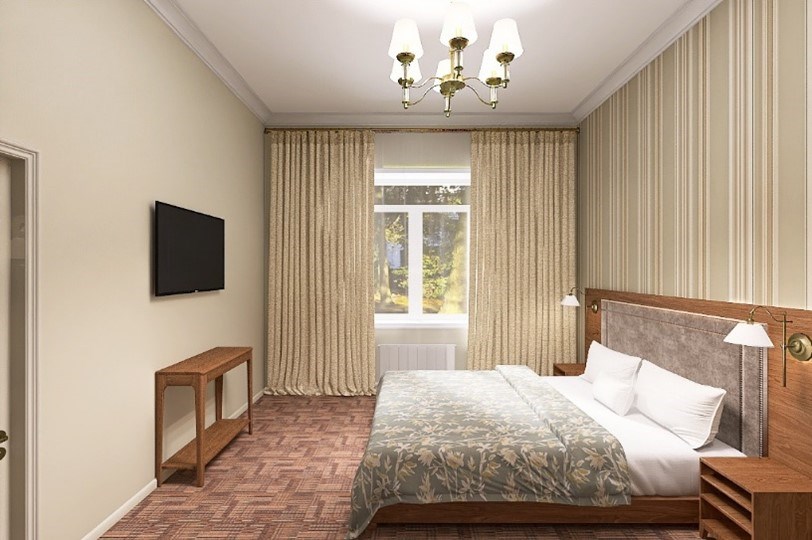 Для проживания гостей на территории расположен спальные корпуса: Крона и Дубрава. Санаторий Ерино предлагает Вам 118 комфортных современных номеров различных категорий. Питание на курорте Ерино представлено в формате «шведский стол» в трех ресторанах курорта. Рестораны также приспособлены для отдыха с детьми.
